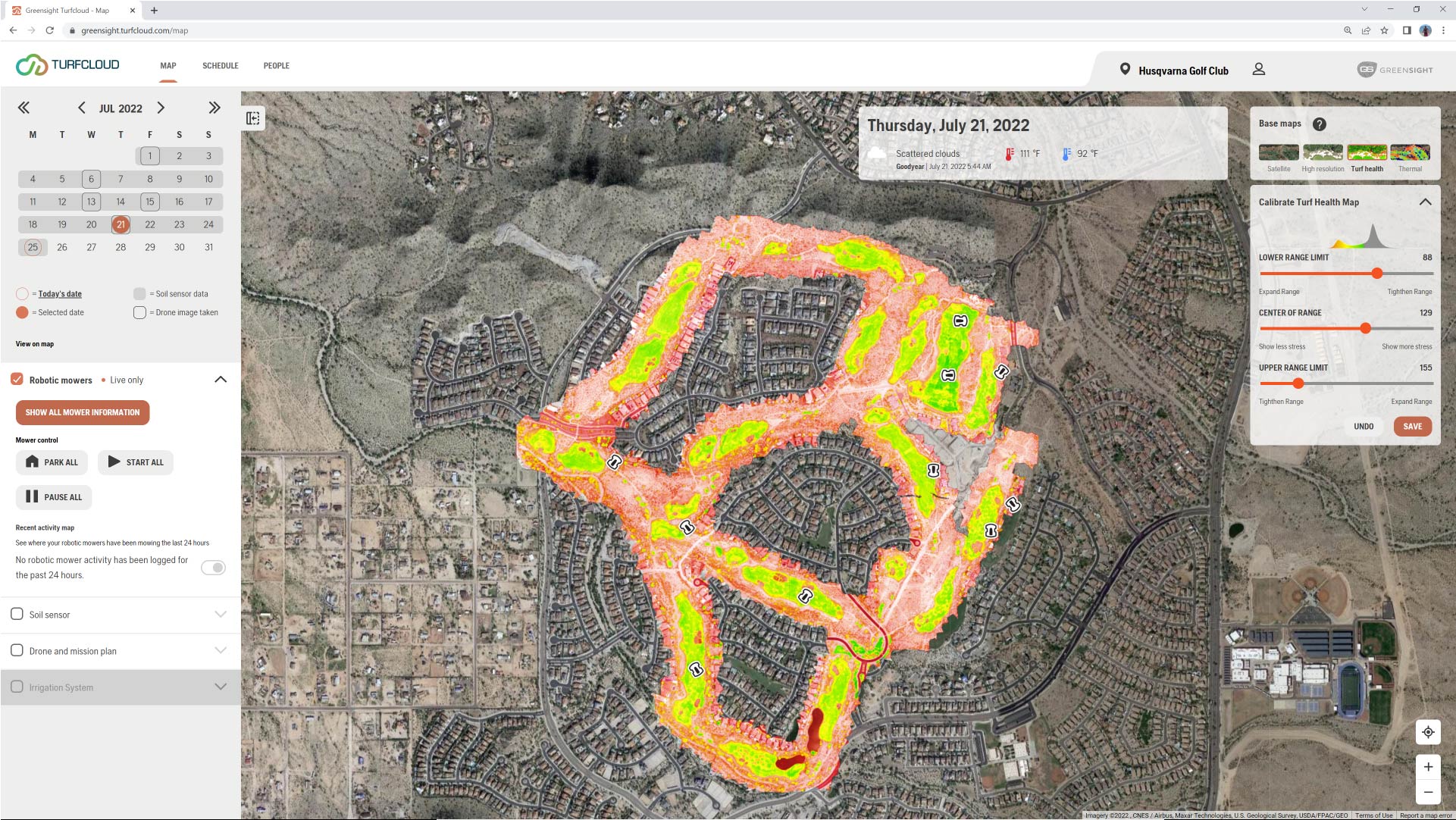 “Having the GreenSight drone fly the course really helps us do so much more without having to be on the course all the time in person,” said Kevin Sullivan, director of agronomy at the Blackhawk Country Club in Danville, Calif. “It’s so much more convenient being able to see everything that is happening on our course and it is much faster than just observing it from a cart ride. The biggest return on investment for us has been spraying less frequently. With the drone data, we are able to treat suspect spots for disease instead of just spraying a banket application, savings thousands.”